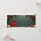 Illustration reine rouge en papier découpé sur fond vert de Noël, décors de pommes de pins, boules décoratives, cadeaux.