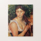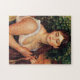Renoir o quebra-cabeça da trança. Pintura a óleo em canvas desde 1884-86. Esta pintura bonita foi terminada durante a rejeção de Renoir do impressionismo. A trança (Suzanne Valadon) descreve uma jovem mulher bonito em um baixo vestido do corte que trança seu cabelo escuro longo. A menina abaixa seus olhos escuros demurely longe do visor. No fundo um pode fazer para fora as folhas verdes de um arbusto próximo. Um grande presente para fãs de Renoir, da arte francesa, e da pintura bonita do retrato.