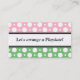 Personalizados para sua família, esses Cartões de visitas de dois lados são projetados com um padrão de bolinhas variado com tamanhos alternados de círculos brancos sobre um rosa e verde no estilo de café. Na parte da frente lê-se "O Vamos organiza uma Reprodução!", e na parte de trás, os nomes, contatos e endereços de seus outros filhos são impressos em preto sobre branco.