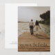 Este casamento fotográfico moderno salve o cartão plano de data tem um design quente e minimalista. A frente apresenta um texto animado de script acima de seus primeiros nomes e data. No verso, definimos o plano de fundo como transparente, para que a cor do papel sirva de base. Você pode escolher uma cor para o plano de fundo, se preferir. Você também pode editar o texto de acordo com as suas necessidades. Talvez você queira excluir um campo de texto que não precisa ou alterar a cor ou a fonte de algum texto. Use as ferramentas intuitivas de design, sua foto favorita e sua inspiração para fazer com que este casamento de na moda salve a carta de data chata exclusivamente sua!