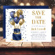 Esta fabulosa 100ª festa de aniversário masculina Salve o cartão de Data com um bolo azul de marinho de 2 camadas com balões azul e ouro de marinho, o número 100 em ouro e confete azul brilhante seria perfeito para pedir às pessoas que reservassem esta data especial para a próxima Festa de aniversário da 100ª. É tradicional e clássico enquanto é fresco, moderno e contemporâneo. A parte de trás é uma folha azul-marinho coordenadora.