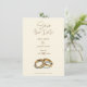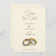Anuncie seu dia especial com elegância de eterno usando estes 2 Cartões salve a data Dourados de Casamentos. Esta design, lindamente minimalista, apresenta dois anéis de casamento dourados, simbolizando o amor, o compromisso e a jornada alegre pela frente. A disposição clara do cartão e a ilustração simples, mas sofisticada, evocam uma sensação de romance e antecipação, estabelecendo um tom gracioso para a sua próxima celebração. Com seu refinado equilíbrio de encanto clássico e simplicidade moderna, este cartão de data salvo destaca seus detalhes importantes claramente, fazer que seja fácil para os convidados marcar seus calendários. Perfeito para casais que buscam um anúncio na moda e sincero, ele encapsula a beleza e o entusiasmo do seu dia de casamento em uma encantadora e memorável manutenção que convida calorosamente os entes queridos a compartilhar sua felicidade.