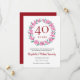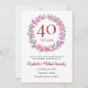 Este Cartão-postal para 40 anos de casamento apresenta uma delicada coroa floral feita de flores, plantas e borboletas selvagens. Ele pode ser facilmente personalizado com suas informações especiais de aniversário de rubi. A parte de trás do convite apresenta uma garland floral correspondente que enquadra as datas de aniversário em um texto branco elegante sobre um fundo vermelho rubi. Os suprimentos de festa e artigos de papelaria estão disponíveis na coleção "Flores Rosa de Aniversário de 40º Casamento".