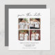 Estilo mínimo com muito espaço em branco com script de conjunto de estilo manuscrito Salve a data acima de suas 4 fotos favoritas. O resto do texto que você pode personalizar facilmente. Basta substituir as fotos de exemplo no espaço reservado para modelo por seus próprios favoritos. Você também pode alterar o fundo branco na parte frontal e as cinzas na parte traseira, por meio da opção Personalizar mais, se desejar.