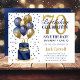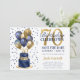 Esta fabulosa festa de aniversário masculina Salve o cartão Data com um bolo azul de marinho de 2 camadas e balões de ouro com marinho azul e ouro, o número 70 em ouro e confete azul brilhante seria perfeito para pedir às pessoas que reservassem esta data especial para a próxima Festa de aniversário. É tradicional e clássico enquanto é fresco, moderno e contemporâneo. A parte de trás é uma folha azul-marinho coordenadora.