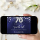Um moderno e elegante Salve a Data para uma parte de 70 aniversário. Um fundo azul marinho decorado com estrelas de falso prata. Personalize e adicione uma data e um nome. A cor azul é irregular. O texto: Salvar a Data é gravado com um script de estilo com letra de tendência grande.