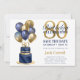 Esta fabulosa festa de aniversário masculina Salve o cartão de Data com um marinho azul de 2 camadas e um bolo de ouro com marinho azul e balões de ouro, o número 80 em ouro seria perfeito para pedir às pessoas que reservassem esta data especial para a próxima Festa de aniversário. É tradicional e clássico enquanto é fresco, moderno e contemporâneo. A parte de trás é uma folha azul-marinho coordenadora.