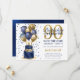 Esta fabulosa festa de aniversário masculina Salve o cartão Data com um bolo azul de marinho de 2 camadas e balões de ouro com marinho azul e ouro, o número 90 em ouro e confete azul brilhante seria perfeito para pedir às pessoas que reservassem esta data especial para a próxima Festa de aniversário. É tradicional e clássico enquanto é fresco, moderno e contemporâneo. A parte de trás é uma folha azul-marinho coordenadora.