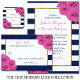 A coleção de casamento moderna de luxo apresenta um clássico fundo azul-marinho e faixa branca, acentuado com lindas rosas cor-de-rosa e uma falso estrutura de folha de ouro. Essas cartas são fáceis de personalizar e serão a "salva a data" perfeita para qualquer casamento, chá de panela, festa de aniversário, celebração de noivados ou qualquer outra ocasião especial.