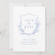 A eruta e eruta crista de folhas botânicas ilustrada com moderna escrita de tendências e fonte clássica em azul e branco, Simples e sofisticado. cartões salve a data excelentes para casamento clássico moderno, casamento formal simples, casamento elegante de jardim botânico. Ver todas as peças correspondentes na coleção