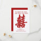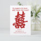Este Cartão de Datas de Segunda Felicidade Moderna consiste no caractere "dupla felicidade" em chinês em cintilação vermelha, e nomes personalizáveis, data e local.