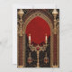 A escura elegância do estilo gótico. O fundo é um vermelho profundo e rico que oferece um contraste dramático aos sotaques dourados brilhantes. O design do estilo gótico combina elegância e misticismo.