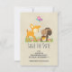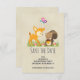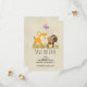 Guarde o cartão de ponto com uma ilustração fofinha, com um veado bebê e um pequeno esquilo segurando uma bolota e uma borboleta voando sobre suas cabeças. Estas adoráveis criaturas de floresta em pé sobre uma grama com alguns cogumelos brancos perto de seus pés.