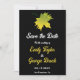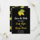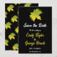Este casamento outono elegante, exceto o convite de data, é perfeito para um casamento moderno no outono. A simples design apresenta folhas verdes de outono com elegante tipografia branca e amarela sobre fundo preto.