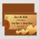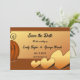 Este casamento outono elegante, exceto o convite de data, é perfeito para um casamento moderno no outono. Os simples design incluem folhas e abóbora com elegante tipografia preta sobre fundo castanho.