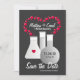 Convites (postagem, convites, cartão postal, imã, picada de bolo) Perfeito para amantes este design romântico reproduz um copo com coração vermelho, tubo de ensaio e frasco. Bolhas vermelhas formam um coração. Personalize-o com seu próprio texto exclusivo. Excelente para salvar os anúncios de data, chás de casamento, festas de aniversário e Dias de os namorados. PinkInkArt original!