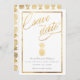 Casamento Dourado com abacaxi tropical salve as datas que apresentam um ouro de abacaxi na frente e no centro com um padrão marcante de abacaxi no verso.