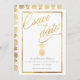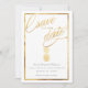 Casamento Dourado com abacaxi tropical salve nossa nova data com um ouro de abacaxi na frente e no centro com um padrão impressionante de abacaxi no verso.