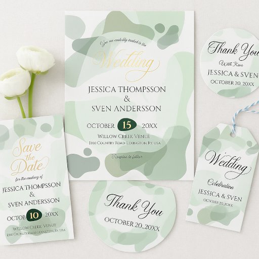 Celebre seu dia especial com este cartão de casamento verde moderno, com sábio mole, hortelã e musgo em estilo geométrico contemporâneo. O trabalho de arte único inspirado na botânica combina formas orgânicas e elegância minimalista, fazer perfeito para casais que amam um olhar fresco e moderno. Ideal para casamentos com temas de verde, ecologia ou jardim natural.