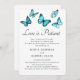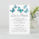 Borboletas em aquarela azul. Cartão de casamento romântico e elegante. Familiares e amigos saberão que você teve que adiar os eventos do seu casamento com este cartão de aviso de adiamento elegante.