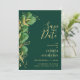 Crie cartões únicos verde esmeralda e dourados, guardados à data, decorados com uma folhagem elegante de eucalipto. Os modelos facilitam a digitação de nomes, data e local, site e o upload de sua foto no verso. Você também pode adicionar um código QR ao seu site de casamento - certifique-se de adicionar seu site antes de fazer o pedido para que o código QR funcione como deve.
