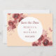 Um bonito burgundy e pêssego, cor de água floral "Salve a Data", este design apresenta um design de flor vermelha profunda. Este convite é excelente para todas as estações. O fundo é pêssego, flores e tiros de fontes. Personalize o seu hoje!