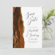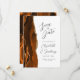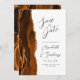 A borda esquerda deste elegante casamento moderno salve o cartão de data apresenta uma borda de cor laranja queimada, aparada com brilho dourado. O texto personalizável combina a escrita manual de cinzas de carvão, as fontes em copperplate e itálico em um fundo branco. O verso apresenta uma design de cor laranja queimada e dourada.