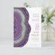 Nem todos os designs de casamento são criados iguais. Os layouts assimétricos para as peças neste impressionante conjunto de casamento provam que isso não é ruim! Bandas de cor onduladas em tons contrastantes de roxo violeta e verde com um centro de cristal brilhando formam um sotaque geode/agate na maioria das peças do conjunto. O reverso apresenta um fundo de abstrato de coordenação que lembra a pedra vedada com brilho. O cartão 'Salvar a Data' do casamento mostrado aqui apresenta o acima mais uma modelo para adicionar os detalhes pertinentes do evento de casamento. Procure ID647 para ver todas as peças de coordenação neste conjunto.