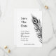 Penas de pavão leves e sábias adornam este convite de uma nova forma. Esta opção Salvar a Data faz parte da coleção completa de casamento Agite seus Pais da Cauda e está disponível em várias cores. É apresentado no papel de base; no entanto, recomendo o peso e a textura do papel de linho.