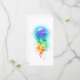 Água-viva grande, iridescente, desenhada artisticamente, brilhante, com longos tentáculos em branco, pintada sobre fundo de aquarela multicolorido. Água-viva arco-íris.