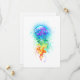 Água-viva grande, iridescente, desenhada artisticamente, brilhante, com longos tentáculos em branco, pintada sobre fundo de aquarela multicolorido. Água-viva arco-íris.
