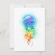 Água-viva grande, iridescente, desenhada artisticamente, brilhante, com longos tentáculos em branco, pintada sobre fundo de aquarela multicolorido. Água-viva arco-íris.