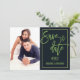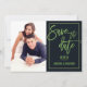 Casamento Salve o cartão com fotos Data com script cursivo de escrita manual e esquema de cores de tendência personalizável para as suas especificações de evento. A imagem de exemplo foi usada com permissão.