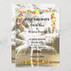 Este design apresenta hibisco e palmeira no fundo da praia. Casamento na praia tropical.