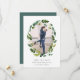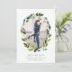Elegante botânico salva as datas tem uma foto de noivado favorita cercada por uma coroa oval de uma luxuosa folhagem verde e flores brancas. Personalize com seus nomes, data do casamento e local, com informações adicionais como o site de casamento no verso.