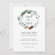 Casamento bonito, elegante e moderno salve as cartas de data para sua ocasião especial! Perfeito para a feliz e alegre época de Natal de inverno! A cor d'água, a cor escura e a folhagem verde-clara, a borda da coroa com eucalipto, pinho-marrom e folhas de pinheiros, e as armações de flores brancas de magnólia, a celebração do seu casamento " salve a data ". Seus nomes são apresentados em fontes modernas abaixo da coroa, e reverso da carta para revelar um padrão de neve verde sábio no verso. Personalize seus detalhes de casamento, data, local e muito mais na frente.