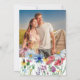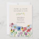 Casamento de flor selvagem salve o cartão com sua foto e suas flores silvestres de cor d'água. Esta design botânica russa tem uma bonito fronteira de flores silvestres, incluindo a margarida-de-papoila-dormideira, a cabeça-seca e o trevo. Uma floral moderna elegante com tema de jardim boêmico e feminino. Por favor, navegue na minha loja na coleção Charm de Flor Selvagem, para obter itens correspondentes.