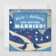 Celebre o seu casamento de inverno com este modelo fácil de atualizar. Basta preencher o nome, idade, data, hora, local da festa e quaisquer notas de RSVP ou outras informações. Mude de "Marc e Anthony estão se casando!" para "os Willoughby's estão comemorando o Natal!". Disponível em muitos desenhos para todas as ocasiões. O charmoso design apresenta uma variedade de tons de azul, cremes e neve branca caindo em uma cena invernal montanhosa com dois passarinhos apaixonados e um coração vermelho rosa brilhante e roxo flutuando acima de seus olhares amorosos.