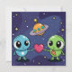 Este design fora deste mundo mostra personagens alienígenas adoráveis e OVNIs enviando mensagens em forma de coração entre si através de um pano de fundo cósmico. Os aliens vêm em várias formas e cores, cada uma com seu encanto exclusivo. O fundo da galáxia brilha com estrelas e nebulosas. Isso se encaixa melhor para entusiastas de ficção científica, crianças interessadas no espaço, e qualquer um que ama uma mistura de temas fofos e cósmicos. Adequado para eventos planetários, convenções de ficção científica, festas com temas espaciais infantis e lançamentos tecnológicos peculiares.