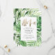 Convites de aniversário de folhagem modernas de palmeiras tropicais. Texto do script de efeito ouro pintado à mão. Parte de uma coleção de tendência de verão. A cor de fundo pode ser alterada.