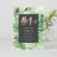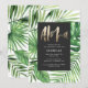 Convites de aniversário de folhagem modernas de palmeiras tropicais. Texto do script de efeito ouro pintado à mão. Parte de uma coleção de tendência de verão. A cor de fundo pode ser alterada.