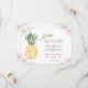 Design de cartão único com flores tropicais desbotadas (para uma safra, efeito maravilhoso), tipografia de ouro Aloha, abacaxi aquoso, símbolo de hospitalidade e de estilo exótico e tropical, este convite é perfeito para casamentos do sul, tropicais, havaianos ou Caribe, todos tipos de casamentos de destino insulares. Use a ferramenta Personalizar para adicionar suas informações. Visite, por favor, minha Coleção de Praia Aloha Pineapple para itens correspondentes, como RSVP, adesivos, selos postais, menu, programa, convites de chá de panela etc.