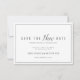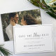 Alteração do plano: simples cinza de texto e cartão branco com uma foto ao contrário. Avise aos seus convidados que o seu casamento ou outro evento foi cancelado ou adiado devido a circunstâncias imprevistas.