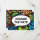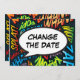 Personalize com seus nomes e detalhes para anunciar a mudança de data do seu evento especial. Tema de arte pop de história em quadrinhos moderno, divertido design retrô, perfeito para casamentos, chás de noiva, chás de bebê, batizados, festas de noivado, celebrações de aniversário, formaturas, festas de aniversário e outros eventos especiais ao longo do ano! Um design legal, moderno e divertido que dá um toque de energia no seu dia. Criado por Thisisnotme©