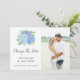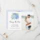Estes cartões de alteração de data apresentam um design floral de hortênsia azul em aquarela. Eles fazem parte de uma coleção que inclui uma gama completa de convites de casamento e papelaria combinando. Personalize-os com seu próprio texto e foto. Por favor, visite nossa loja para ver a gama completa de itens que você pode personalizar para o seu casamento.