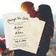 A opção de impressão em segundo plano do pergaminho bege muda o cartão de data. Avise os hóspedes que o casamento foi adiado, com esta alteração, o cartão de convite. Adicione a nova data de salvamento. Personalize-o ainda mais para alterar o plano de fundo de imagem. Um padrão de diamante está na parte de trás do cartão guardado. Circunstâncias imprevistas com pandemia, ou uma questão pessoal de vida, esta é a carta ideal para enviar aos seus convidados. Cartão projetado moderno, simples e minimalista.