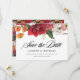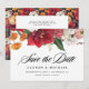 Anuncie sua data de casamento com este elegante salve o cartão de data com um código QR e florais de aquarela. A design inclui o amarilis vermelho, o ranúculo rosa, o crisântemo da mauve e o lisianthus branco numa paleta romântica de inspiração de queda. Os convidados podem facilmente digitalizar o código QR para RSVP, acessar o site do casamento ou visualizar os detalhes do evento. O formato de cartão plano é ideal para envio de envelope ou inclusão em um pacote de papelaria de casamento. Todo o texto e o link de código QR podem ser personalizados para ajustado de sua celebração.