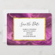 Casamento guarde o cartão de data com um belo desenho abstrato. Cor de ametista roxa escura com fitas de ouro aninhadas entre as camadas. Design rica e bonita. A camada sobre a parte superior é um quadro retangular com uma borda falsa de folha de papel dourada, com o seu dentro de texto personalizado.