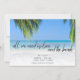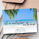 Perfeito para o seu casamento na praia, os cartões salve a data de design "Tudo que precisamos é amor e praia" são personalizados com a data do seu casamento, nomes, localização e foto nas costas.