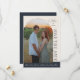 Isso permite salvar a data com charme e simplicidade, com a foto da noiva e do noivo em um design de arco. Coordena-se com a coleção Everduradouro Love Deep Blue. Entre em contato conosco se quiser ajudar a personalizar este convite.